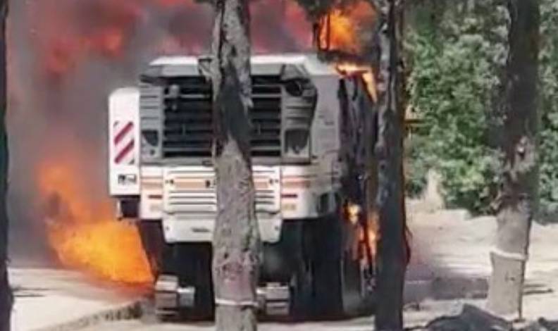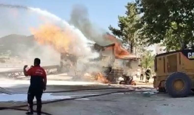 Polis ekipleri, yolda geniş güvenlik önlemi aldı. Doğalgaz hattındaki vana kapatılırken, iş makinesi itfaiye ekiplerince söndürüldü.