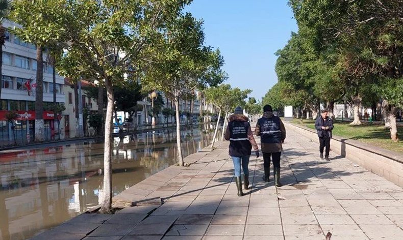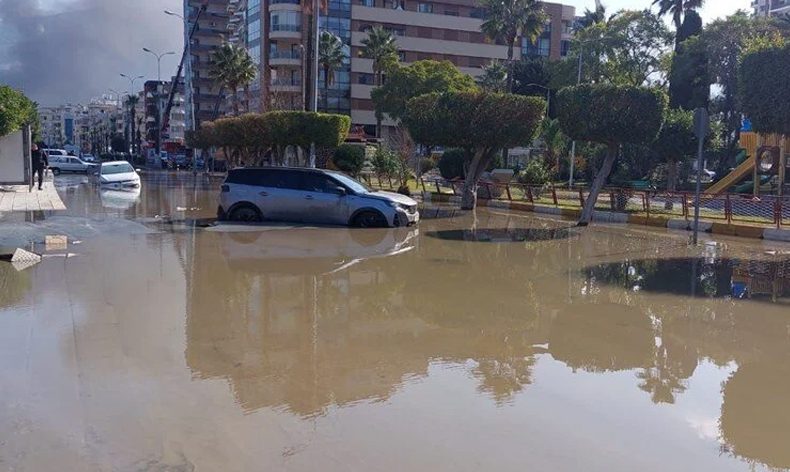 Mete Aslan Bulvarı’na doğru deniz taştı. Yaklaşık 200 metre içeri giren deniz suyu bazı bölgelerde binaların 4’üncü katına kadar yükseldi.