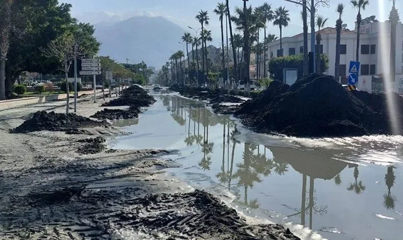 Depremin 4’üncü gününde deniz suyu sahilden çekildi yerine çamur kaldı. Ancak sahile yakın yollar ve Barış Manço Parkı’nda su birikintileri kaldı.