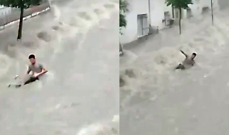 Sel suyundan geçmeye çalışan bir vatandaşında ayağı kayarak düştü. Düşen vatandaş sel suyuna kapılarak sürüklendi. Yaşanan o anlarda cep telefonu kamerasına yansıdı. Görüntülerde, yolun göle döndüğü, sürücülerin ve vatandaşların zor anlar yaşadığı görülüyor. Bir vatandaşında suyun içinden geçmeye çalışırken ayağının kayıp düştüğü ve sürüklendiği görülüyor.