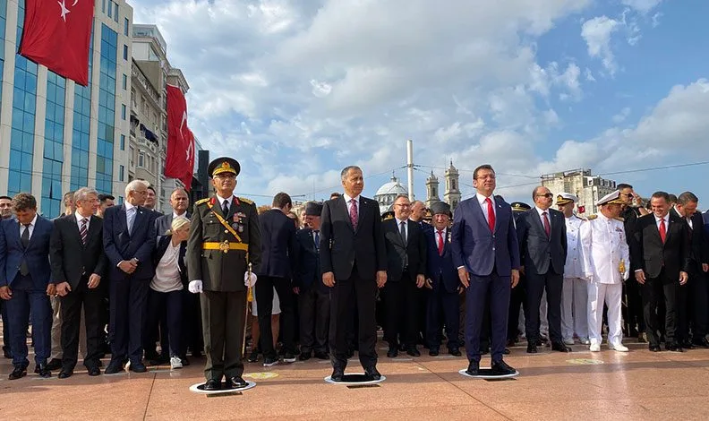 İstanbul Valisi Ali Yerlikaya’nın Cumhuriyet Anıtı’na çelenk bırakmasıyla başlayan tören, 1.Ordu Komutanlığı ve İstanbul Büyükşehir Belediyesi çelenklerinin bırakılmasıyla devam etti. Zafer Bayramı kutlamaları çerçevesinde düzenlenen tören, İstiklal Marşı’nın okunması ve saygı duruşunda bulunulmasıyla sona erdi.
