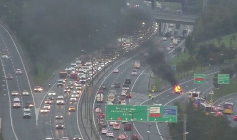 Kaza sonrası TEM Otoyolu’nda uzun kuyruklar oluştu.