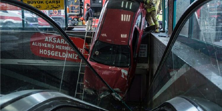 İstanbul’da yeraltı çarşısına otomobil düştü!