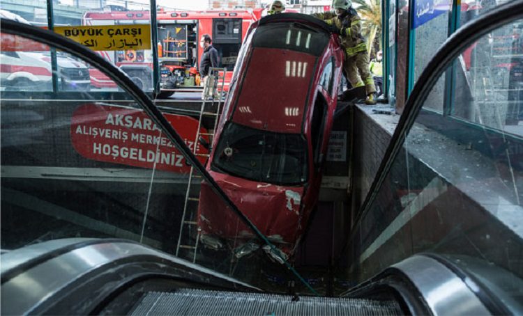 Çarpmanın etkisiyle otomobil sürücüsü Yağmur direksiyon hakimiyetini kaybederek yeraltı çarşısının camından aşağıya düştü. Kazada otomobilde bulunan şoför Süleyman Yağmur ve ismi öğrenilemeyen bir kişi hafif yaralandı.