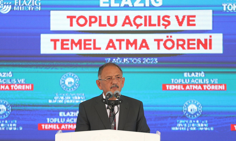 Çevre Şehircilik ve İklim Değişikliği Bakanı Mehmet Özhaseki, programları çerçevesinde Elazığ’a geldi. İlk olarak Valiliği ziyaret eden Bakan Özhaseki, ardından Elazığ Belediyesi tarafından organize edilen Toplu Açılış ve Temel Atma Töreni’ne katıldı. Bakan Özhaseki burada açıklamalarda bulundu.