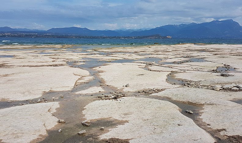 İtalya’nın en büyük gölü olan Garda Gölü’ndeki su seviyesi Avrupa’daki aşırı kuraklığın ortasında tarihin en düşük seviyesine indi. Gölde bulunan Sirmione Yarımadası’nı çevreleyen kayalar, suyun azalmasıyla ortaya çıktı.