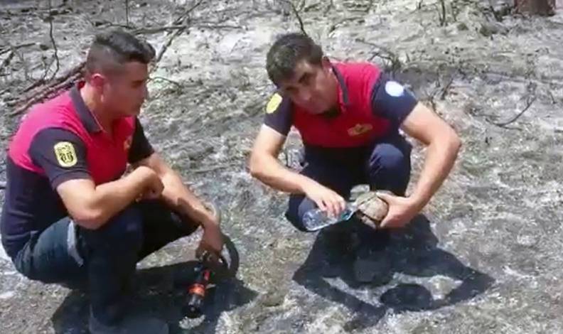 İtfaiye ekipleri ayaklarında yanık tespit edilen kaplumbağayı önce suyla temizledi ve serinletti. İtfaiyeciler daha sonra susuzluktan yorgun düşen kaplumbağaya yanlarındaki pet şişe ile su içirdi. Susuz olduğu görülen kaplumbağa pet şişedeki suyu uzun süre içerek, yakınlarda doktor olduğunu belirten bir vatandaşa teslim edildi.