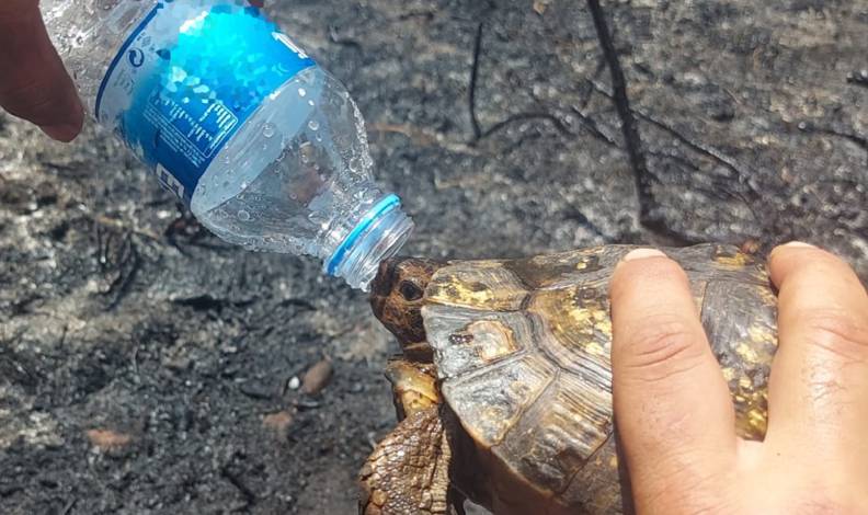 Değirmenyanı Mahallesi bölgesinde yanan alanlarda soğutma çalışması yapan itfaiye ekipleri, yanan sahada hareketsiz bekleyen kaplumbağayı fark etti. Ekipler kaplumbağanın ayaklarında alevlerden kaynaklı yanık olduğunu ve yaşamsal faaliyetlerinin devam ettiğini fark etti.