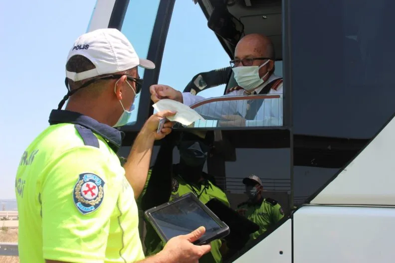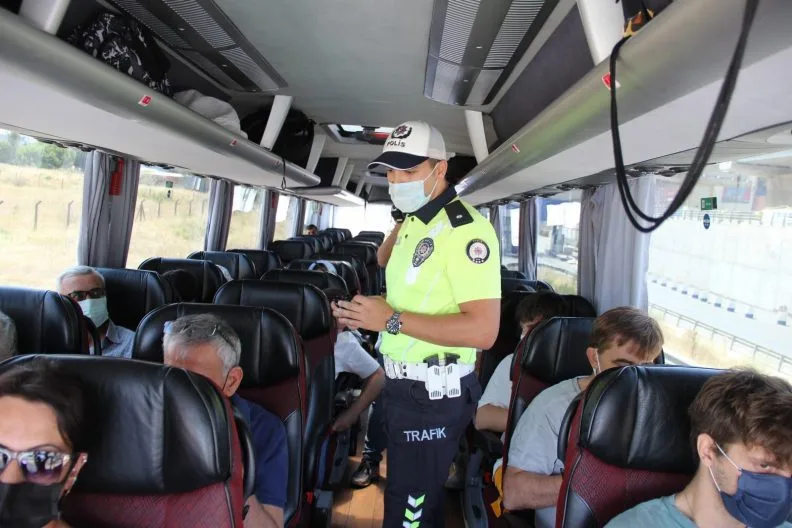 Polis ekipleri tarafından yapılan denetimlerde yolcuların ve sürücülerin yolculuk kurallarına riayet ettikleri görüldü. Seferleri hakkında açıklama yapan şehirler arası otobüs sürücüsü Fatih Çam, “Memur arkadaşlar gerekli denetimleri yapıyorlar. Biz de kurallara uyarak görevimizi yapmaya çalışıyoruz. Bu araçta 3 şoför çalışıyor ve 3 günde bir sürekli değişiyoruz. Seferlerde 2 kaptan olarak çalışıyoruz değişimli olarak” dedi. Bir başka otobüs şoförü Ömer Meral ise, “Denetimlerin sıklaşması gayet güzel bir uygulama. 24 saat içerisinde 9 saat çalışıyoruz. 4 buçuk saat yol gittikten sonra sürücü değişiyor. Yolcularımız da emniyet kemeri ve maskelerini takarak seyahatlerini gerçekleştiriyorlar” açıklamasında bulundu.