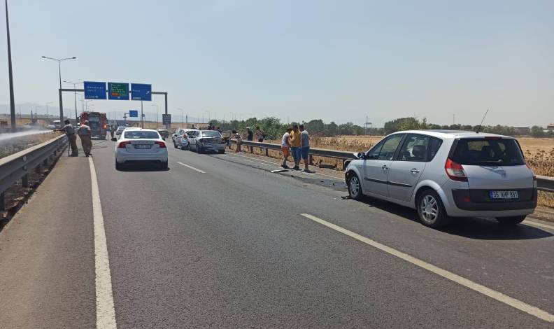 Yangın, rüzgarında etkisiyle büyünce dumanlar bölgeyi kapladı. Yangın, yoldan geçen sürücülere de zor anlar yaşatırken, duman nedeniyle görüş mesafesi düştü ve 4 araç birbirine girdi.