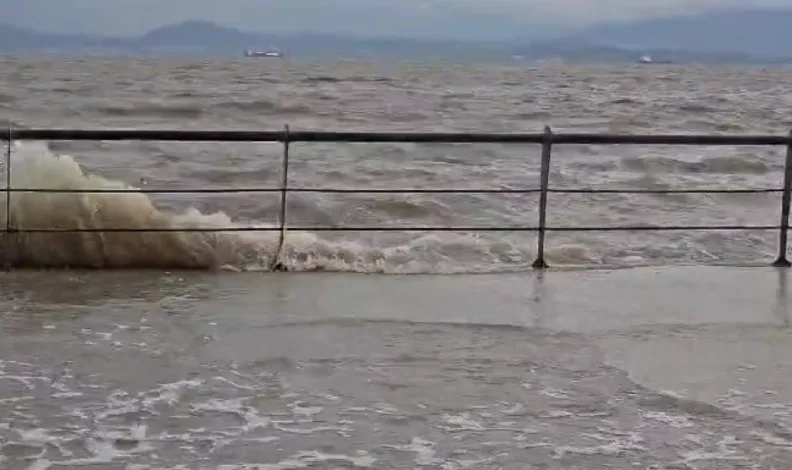 Meteoroloji Genel Müdürlüğü, İzmir genelinde kuvvetli sağanak yağış ve fırtına beklendiğini duyurarak kentin tüm ilçeleri için ‘sarı uyarı’ verdi. Yapılan uyarıların ardından İzmir’in Dikili ilçesi Çandarlı Mahallesi’nde fırtına etkisini hissettirdi. Bölgede fırtınayla birlikte deniz seviyesinde yükselme yaşanırken, deniz suyunun renginin değiştiği görüldü.
