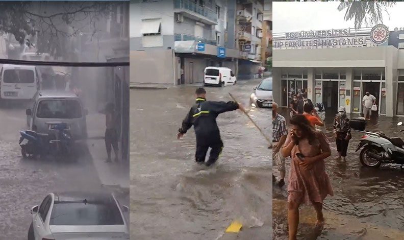 Öte yandan, aniden bastıran sağanak yağış nedeniyle Ege Üniversitesi Tıp Fakültesi Hastanesini su bastı, hastalar zor anlar yaşadı.