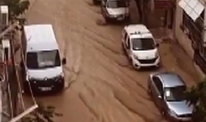 İzmir’in Bornova ilçesinde etkili olan sağanak yağış sebebiyle kısa sürede yollar ve sokaklar göle döndü. Araçlar caddelerden geçerken ilerlemekte sıkıntı çekti.