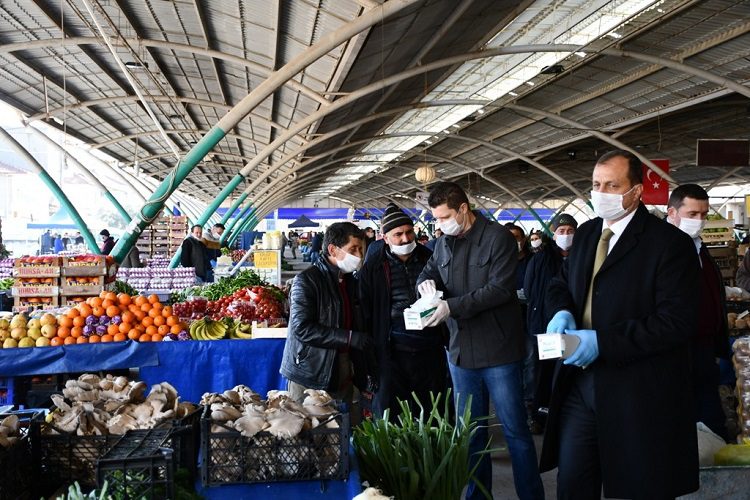 İznik Belediye Başkanı Kağan Mehmet Usta yaptığı açıklama da “İznik Belediyesi Zabıta Müdürlüğüne bağlı ekiplerimiz ev ev dolaşıp maske dağıtımı gerçekleştiriyor. İlçeye bağlı mahallelerde ise maskeler muhtarlara teslim edilerek ve onların marifeti ile dağıtılıyor. Hane başına 5 adet olmak üzere toplamda 60 bin adet maske dağıtıyoruz. Zabıta ekiplerimiz bugün pazaryerinde iki nokta kontrollü geçiş sağlıyor. Sosyal mesafe korunarak pazaryeri açılışı sağlandı.