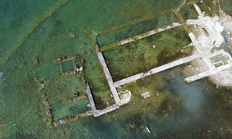Aziz Neophytos’un adına inşa edildiği belirlenen batık bazilika, suların çekilmesiyle gün yüzüne çıktı. Tarihi M.Ö. 4’üncü yüzyıla uzanan Bithynia, Selçuklu, Roma ve Osmanlı gibi pek çok medeniyete ev sahipliği yapan İznik’te 2014 yılında havadan çekilen fotoğraflar sayesinde İznik Gölü içerisinde 2 bin yıllık bazilika olduğu ortaya çıktı.
