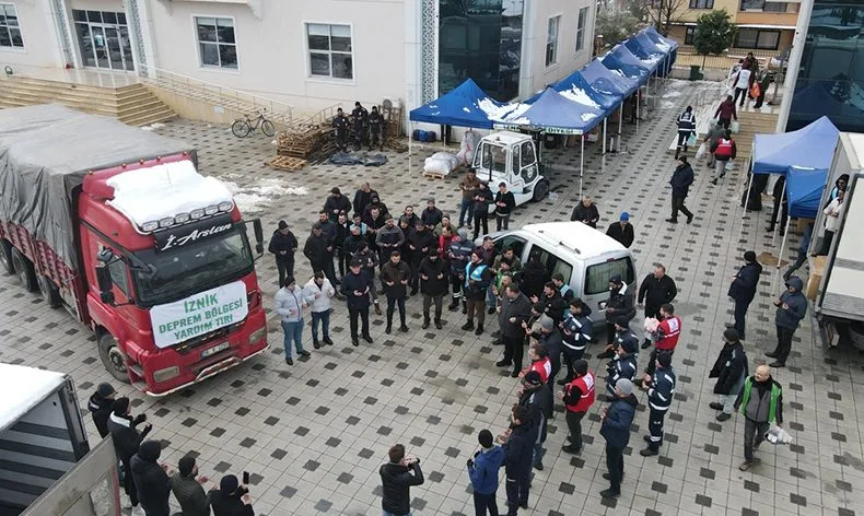 Tüm Türkiye’yi yasa boğan deprem felaketine karşı başlatılan yardımlar İznik’te ilk günden itibaren hazırlanmaya başladı. Depremin hemen ardından ilçede alınan kararla başlayan yardım çağrısına vatandaşlar büyük destek verdi. İznik’ten deprem bölgelerine AFAD’dan gelen talepler çerçevesinde çocuk kıyafeti, battaniye, su, mont, çocuk ayakkabısı, çocuk bezi, ısıtıcı, gıda ürünleri, çocuk maması, yetişkin kıyafetleri, hijyen ürünleri, halı ve yakacak odundan oluşan yardım ürünlerinden 15. tır bugün itibariyle yola çıktı.