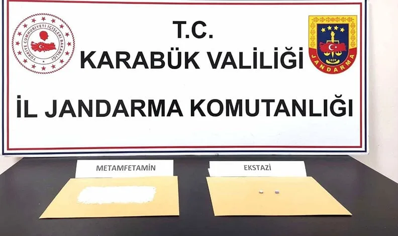 Edinilen bilgiye göre, Karabük İl Jandarma Komutanlığı ekipleri, il merkezinde durdukları araçta ve araçta bukunan 2 şahsın üzerinde 45,11 gram metamfetamin ve 2 adet extacy hap ele geçirildi.