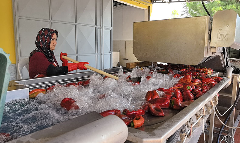 “Kendi işletmemize bakarsak biz iç piyasada sınırlı bir üretim yapıyoruz. Bunu da iç piyasada salçamızın marka olması nedeniyle tüketiyoruz. Ama ayrıca bizim 25 yıldır yaptığımız bir ihracatımız var Hollanda’ya. Bu devam ediyor, hatta bu senede yüzde 20 arttı. Eğer biz bunlarda başarılı oluyorsak bizim hem çiftçimiz hem işçimiz mağdur olmayacaktır. Çünkü biz kadın işçiyi çok çalıştırıyoruz. Aşağı yukarı 80-100 kişi arasında sadece bayan işçiler, kadın işçiler çalışır. Bunun yanında da 10-15 tane erkek işçimiz var ve bu 2-3 ay devam eder. Bizim işletmemizde sezonluk olduğu için böyle devam eder. Ama ekonomik olarak kooperatif olarak sıkıntı yaşamıyoruz. Tabii ki kar oranlarımız düşecektir ama bu krizi, bu sıkıntıyı hep atlatacağız diye düşünüyoruz. İhracatımız geçen sene 1000 tondu, bu sene bin 400 tona çıktı. Bir de bizim Hollanda’ya yaptığımız ürünlerin, onlar nasıl ki bizden aldıkları ürünü bize satıyorlar, aynı işlemi Türkiye’de de bir iki firma yapmak istiyor. Biz onlara da yardımcı oluyoruz. O nedenle işte biraz daha işçiler biber alır, iç piyasadaki yine ihracat yapacak bizim biber sosu dediğimiz, onlarda devreye giriyor. Siparişleri var. Onun için ihracatımız aşağı yukarı bin 400 tona çıkar. O arkadaşların ihracatından dolayı. Şimdi bu tabii ki Türkiye’de dövizin ne zaman ne olacağı bilinmez. Ama son günlerdeki bizim doğalgaza, elektriğe gelen zamların bir kısmını karşılayacağını düşünüyorum. O nedenle zarar etmeyiz ama çok kar da olmaz geçtiğimiz yıllar gibi. Çünkü biz çiftçiyi korumak durumundayız. Bugün biber 8 TL, 10 TL’ye çıkmış. Biz 15 liradan aşağı alamayız. Ama kendi çiftçimizden alacağız. Biz çünkü sözleşmeli çiftçilerle ilişkimiz var ve kontrollüdür. Bizim ürünlerimiz sürdürülebilir tarım çiftçi sertifikası doğrultusunda, kurallarına göre alım yapılır, yetiştirilir. O nedenle istikrarlı bir şekilde gidiyoruz.”