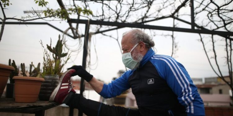 Bursa’da yaşayan 58 yaşındaki 3 çocuk 4 torun sahibi Muharrem Tuna, geçtiğimiz hafta yakalandığı korona virüsü hastanede tedavi görerek yenmeyi başardı. Kronik kalp hastası ve kalbinde 4 stent takılı olan Tuna, eskiden olduğu gibi ultra maratonlara katılmak için evde geçireceği 14 günlük karantinada terasında antrenmanlara başladı. Tuna, terasa çıkmadığı günlerde karantinada kaldığı odasında da dambıllarla form tutuyor. Ayrıca terasında tavuk ve kaz da besleyen Tuna, yetiştirdiği ağaçları da düzenli olarak suluyor.