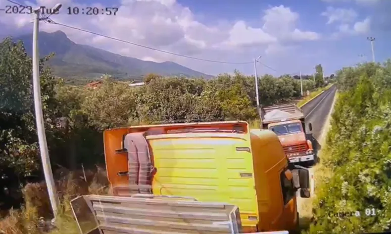 Kamyon ile tırın çarpışması kamerada