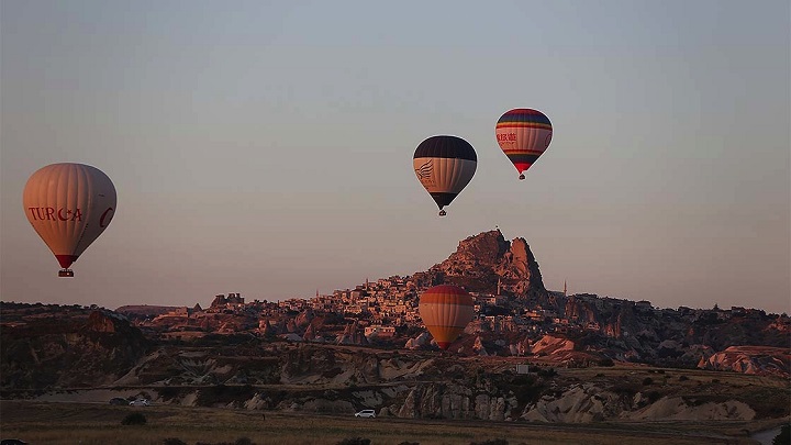 Peribacaları, vadileri, kayadan oyma kilise ve otelleriyle ünlü Kapadokya’da balon turları, yeni tip koronavirüs (Kovid-19) tedbirleri kapsamında Sivil Havacılık Genel Müdürlüğünün aldığı kararla 17 Mart’ta verilen aranın ardından 23 Ağustos’ta yeniden başladı.