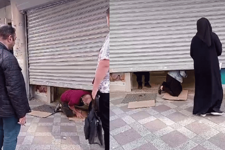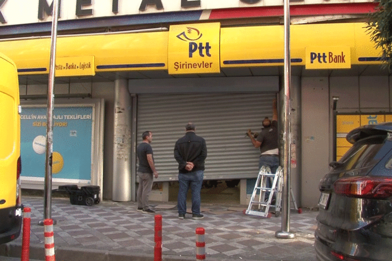 Şirinevler’de bulunan bir PTT şubesinin kapısı bozulunca otomatik kepenk yere yaklaşık bir metre kala durdu. İşlem yapmak üzere şubeye gelen vatandaşlar çaresiz kalınca yere eğilerek içeri girip çıktı. Vatandaşların kaymaması ve üzerlerinin kirlenmemesi için yere karton serildi. Yaşanan durum kameralar tarafından da saniye saniye görüntülendi. Vatandaşların adeta sürünerek şubeye girip çıktıkları görüldü.