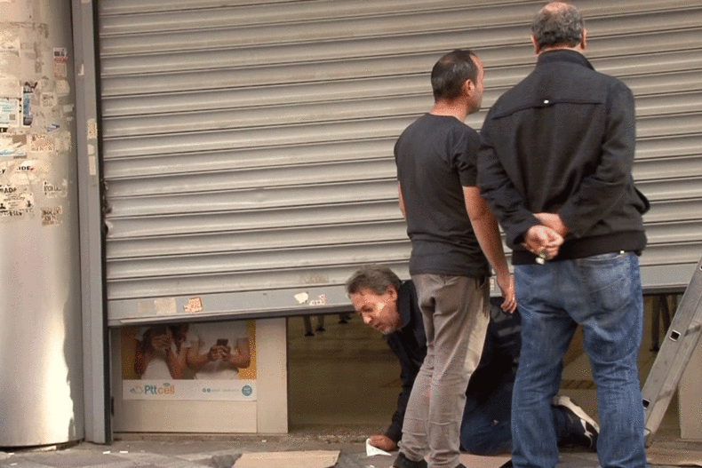 Şirinevler’de bulunan bir PTT şubesinin kapısı bozulunca otomatik kepenk yere yaklaşık bir metre kala durdu. İşlem yapmak üzere şubeye gelen vatandaşlar çaresiz kalınca yere eğilerek içeri girip çıktı. Vatandaşların kaymaması ve üzerlerinin kirlenmemesi için yere karton serildi. Yaşanan durum kameralar tarafından da saniye saniye görüntülendi. Vatandaşların adeta sürünerek şubeye girip çıktıkları görüldü.