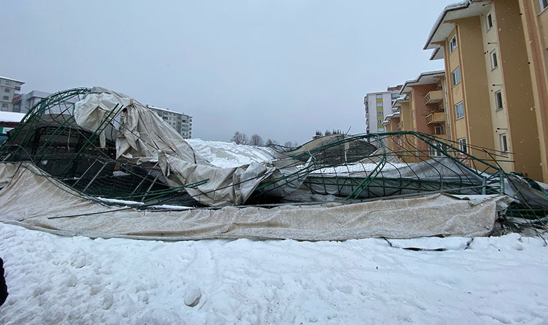Rize’nin Fındılı ilçesine bağlı Aksu Mahallesi’ndeki bir halı sahanın çatısı, üzerinde biriken kar kütlesine dayanamayarak çöktü. Çökmenin etkisiyle halı sahada maddi zarar meydana geldi.
