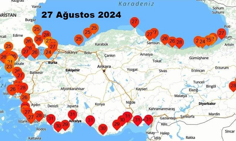 Haziran ayında 19 derece ile Türkiye’nin en soğuk deniz suyu sıcaklığına sahip olan Samsun, Akdeniz’e kıyısı olan şehirlerden 8, Ege’ye kıyısı olan şehirlerden ise 7 derece daha soğuktu. Yazı kavurucu sıcakların etkisi altında geçiren ve pek yağış almayan Samsun’da deniz suyu sıcaklığı 27 Ağustos itibarıyla 27 derecede kalıp, Ege’ye kıyısı olan İzmir, Aydın, Balıkesir gibi illeri geride bıraktı. Akdeniz’e kıyısı olan illerdeki deniz suyu sıcaklığı farkını ise yaz aylarının başına göre yarı yarıya indirdi.