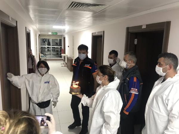 Koronavirüs salgını nedeniyle yurt dışından gelen 458 kişi, Düzce’de bulunan Kredi Yurtlar Kurumu’na ait yurtlara yerleştirilerek karantina altına alındı. Yurtta kalan vatandaşların ihtiyaçlarını sağlamakla görevlendirilen Düzce AFAD Müdürlüğü, 1 Mayıs günü doğan 4 kişiye sürpriz doğum günü düzenlendi. AFAD Müdürü Ali Kartal’ın da katılımıyla karantina altındaki kişilerin odalarına gidilerek, doğum günleri kutlandı. Pastanın üzerindeki mumları üfleyerek söndüren kişiler oldukça duygulanırken, AFAD görevlilerine teşekkür etti.