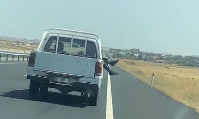 Siverek – Diyarbakır karayolunda seyir halinde bulunan aracın yolcu koltuğunda bulunan bir kişi camdan iki ayağını çıkararak bu şekilde yola devam etti. Tehlikeye aldırış etmeyen şahıs bu şekilde seyahat ederken diğer sürücü ve yolcular o anı cep telefonuyla kayda aldı.
