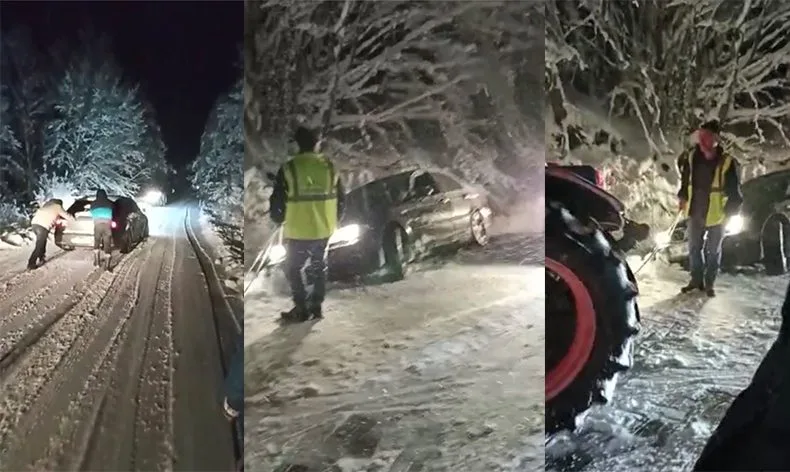 İznik’e bağlı Hacıosman, Candarlı, Sansarak, Elmalı ve Kırıntı mahallelerinde yoğun kar yağışından dolayı yollar trafiğe kapandı. Kar keyfini yaşamak isteyen 4 yabancı sürücü ise araçlarıyla mahsur kaldı. Mahalle sakinleri, mahsur kalanların araçlarını traktörleriyle çekerek kurtardı. O anlar cep telefonu kameralarına yansıdı.