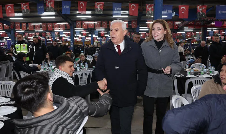 Bursa Büyükşehir Belediye Başkanı Mustafa Bozbey, Karacabeylilerle kardeşlik sofrasında buluşmaktan son derece mutlu olduğunu söyledi. Ramazan ayının bereketini ve huzurunu kent genelinde hissettiklerini belirten Başkan Mustafa Bozbey, gönüllerin aynı duada buluştuğunu, lokmaların paylaşıldığını, kardeşliğin pekiştirildiğini dile getirdi. Ramazan ayının dayanışmanın büyüdüğü, iyiliğin çoğaldığı, kalplerin yumuşadığı bir ay olduğunu ifade eden Başkan Mustafa Bozbey, “Soframızda eşitlik, adalet, paylaşma, birlik ve beraberlik vardır. Ramazan ayı boyunca Bursa’nın dört bir yanında hemşehrilerimizle bir araya geliyoruz. Her akşam kardeşlik sofrasını bir ilçede kuruyoruz. 4 sabit iftar noktasında halkımızla buluşuyoruz. İftara yetişemeyenlere iftariyelik ikram ediyoruz. Ramazan ayında her gün ortalama 35 bin vatandaşımıza ulaşmanın mutluluğunu yaşıyoruz” dedi.