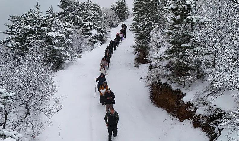 Karın tadını mest eden manzarada yürüyüş yaparak çıkardılar