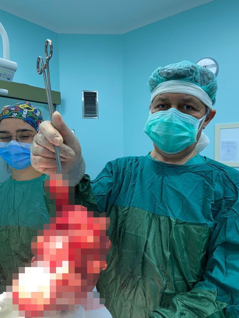 Opr. Dr. Mustafa Uzun ve ekibi tarafından yapılan başarılı bir operasyonla S.K. adlı kadının karnından 35 santimetre büyüklüğünde kitle çıkarıldı.