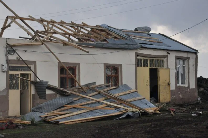 Karsta Hortum Çatıları Uçurdu