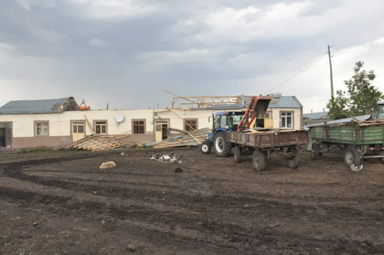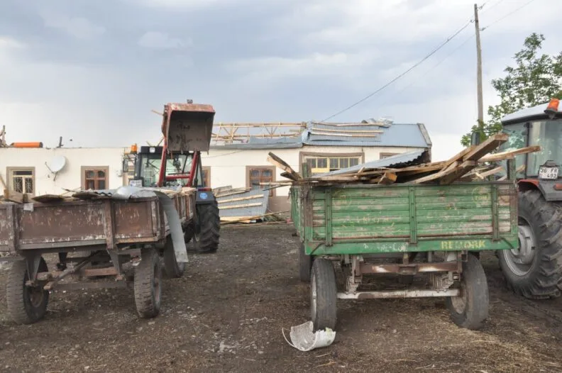 Hortumun saat 12.00 sıralarında meydana geldiğini ifade eden Kenan Kençtemur, “Saat 12.00’de oldu. Allah’tan köyün içinde olmadı olsaydı daha büyük bir felaket olurdu. Arazide yarım saatten fazla hortum dönmeye başladı. 10 eve zarar verdi, köyün çıkışındaki evlere, büyük bir felaket köyün içinde olsaydı felaket olurdu” dedi.
