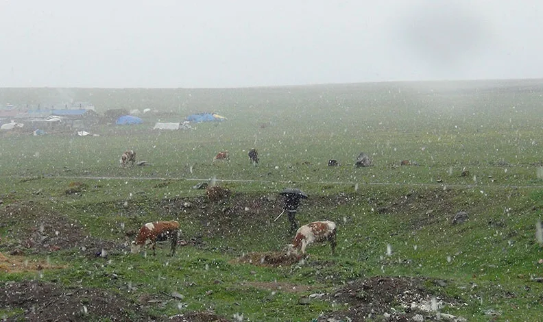 Mayıs ayında kar yağdığını belirten hayvan yetiştiricileri, “İlkbaharda burada kar yağıyor. Biz burada karda kaldık. Vallahi ilkbaharda kar biz şaşırdık” dedi.