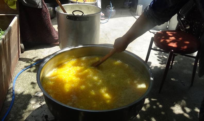 Kars’ta kış sofralarının olmazsa olmazı sarı yağ, tereyağının eritilerek kaynatılmasından elde ediliyor. Karslı kadınlar, her yıl Haziran ayında aldıkları tereyağını sarı yağa dönüştürerek kışın yemek için saklıyor. Kadınların imece usulü erittikleri yağlarla aile bütçelerine de katkı sağlıyorlar.