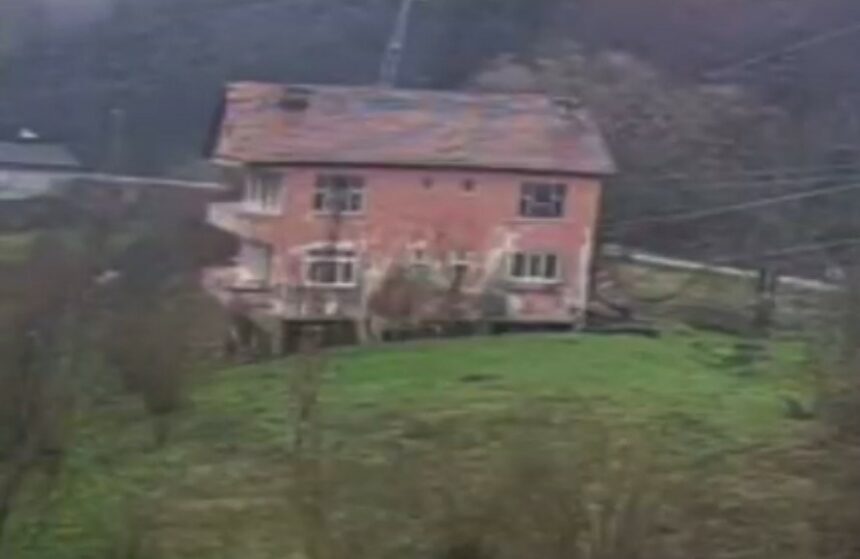 Cide ilçesi Alayüz köyü Örtülü Mahallesi’nde, Mehmet Altıntaş’a ait iki katlı ev heyelan riski taşıması sebebiyle yaklaşık 10 yıl önce tahliye edildi. Bölgede etkili olan sağanak yağışlar sonrası yaşanan toprak kayması sırasında iki katlı ev çökü. Evin çökme anı ise güvenlik kamerasına yansıdı. Görüntülerde evin yan yatarak bir anda çöktüğü görülüyor.