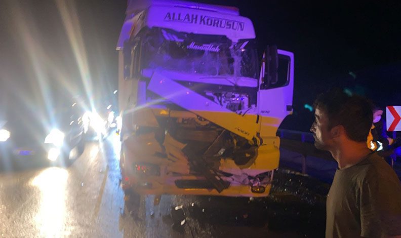 Samsun istikametinde seyir halinde olan kamyonet ile plakası tespit edilemeyen 2 tırın karıştığı trafik Kazasında 1 kişi hafif yaralandı.