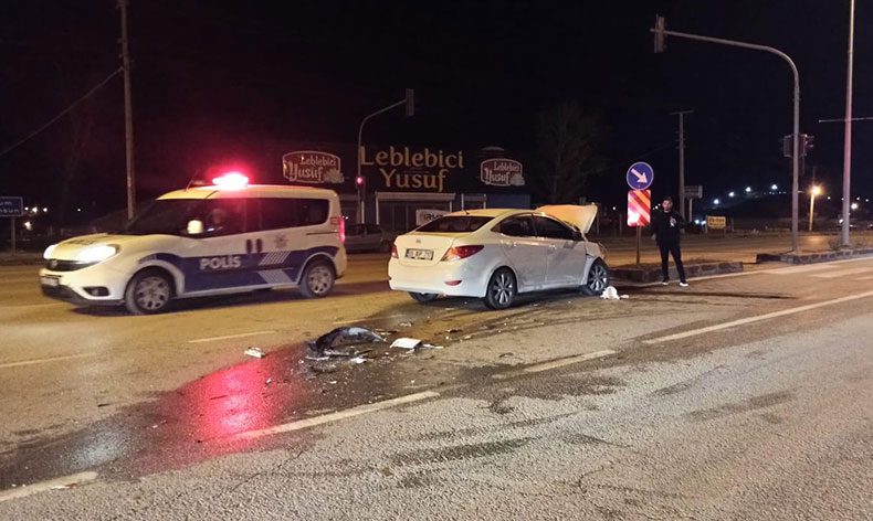 Kavşakta iki otomobil çarpıştı