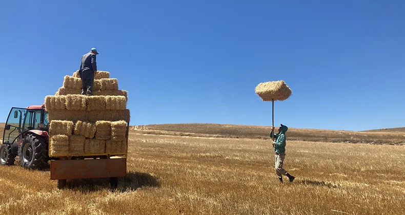 Sıcak havanın kendilerini zorladığını belirten Kaplan, “Hasat zamanı başladı. Biçerdöverler tarlalara girdi. Hasadımızı yaptık, şimdi de saman balyalarımızı yapıyoruz. Hayvanlarımızın samanını temin ediyoruz. Dolu vurduğu için bu sene zarardayız. Hasat düşük. Günlük 300 balya çekiyoruz. Kışa hazırlık yapıyoruz. Birkaç gün böyle sürecek. Hayvanlarımızın yemeğini temin edecek. Hava sıcaklığı nedeniyle elbette zor oluyor. Çiftçinin işi her zaman zordur. Fakat yapacak bir şey yok mecburuz” dedi.