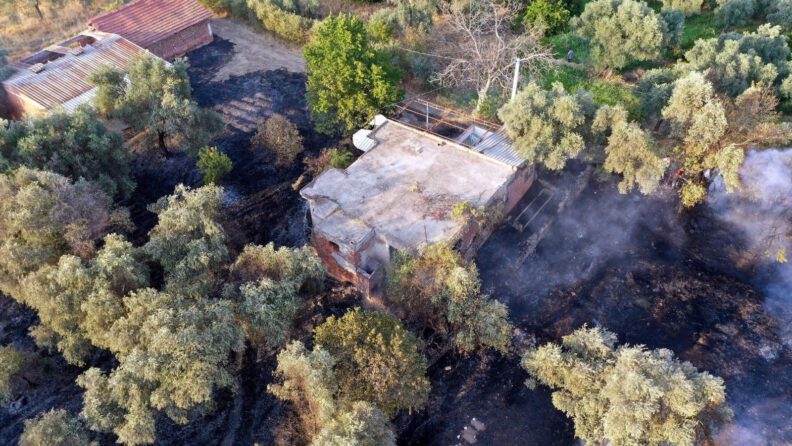 Aydın’ın Nazilli ilçesinde evde kaynak yapan şahıs arazisinin yanmasına neden olduğunu iddia etti. Şahıs jandarma tarafından gözaltına alınırken çevre arazilere de sıçrayan yangın kısa sürede kontrol altına alınarak soğutma çalışmalarına başlandı.