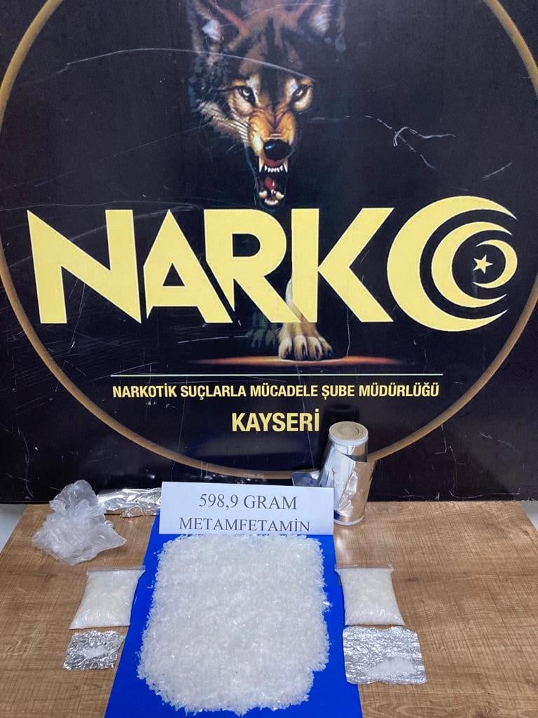 Edinilen bilgiye göre, Narkotik Şube ekipleri tarafından yapılan çalışmalarda S.A isimli şahsın uyuşturucu madde ticareti yaptığı bilgisi edinildi. Yapılan operasyonla S.A. isimli şahıs, Talas ilçesi Turgut Özal caddesi üzerinde yakalandı. Şahsın üzerinde yapılan aramada 2 fişek halinde 2.90 gram metamfetamin maddesi, elinde bulanan çanta içerisinde 503 gram metamfetamin maddesi ele geçirildi. Ayrıca şahsın ikametinde yapılan aramada 93 gram metamfetamin maddesi olmak üzere toplam 598,90 gram metamfetamin maddesi ve 2 adet uyuşturucu paketlemek için kullanılan rulo folyo ele geçirildi.