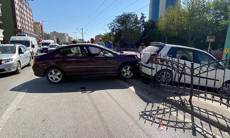 Kaza, saat 15.30 sıralarında merkez Selçuklu ilçesi Musalla Bağları Mahallesi Ahmet Hilmi Nalçacı Caddesi’nde meydana geldi.  Belh Caddesi istikametine seyir halinde olan sürücüleri öğrenilemeyen otomobil ile  otomobil çarpıştı. Çarpışmanın etkisiyle demir korkulukları aşan araç, tramvay yoluna düştü. Kazada 2 kişi yaralandı. İhbar üzerine olay yerine yerine sağlık ve polis ekipleri sevk edildi. Yaralılar, ilk müdahalenin ardından ambulanslarla Konya Şehir Hastanesine kaldırıldı.