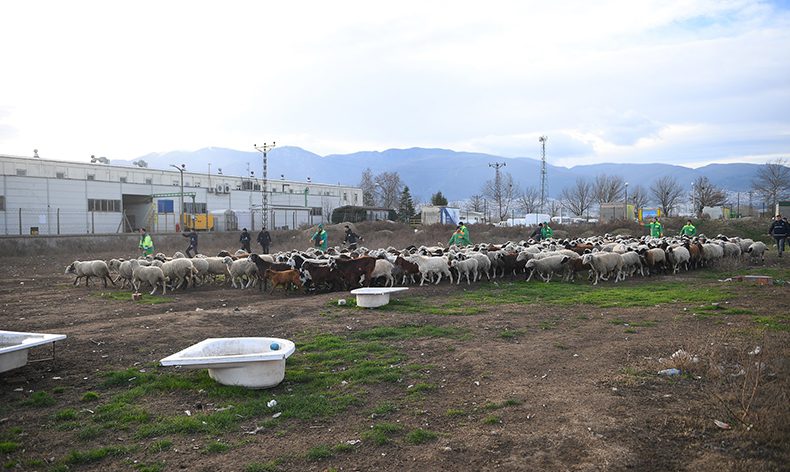 Zabıta Müdürlüğü ekipleri, vatandaşa ait boş alana kaçak olarak yapılan derme çatma ağılların yıkılması ve başıboş küçükbaş hayvanların yakalanması için çalışma gerçekleştirdi. Sahipleri tarafından araziye salınan ve çevreye zarar vermesinden dolayı valilik ile belediyelere çok sayıda şikayetin geldiği keçi ve koyunları toplamak için harekete geçen ekipler, başıboş dolaşan koyunların peşine düştü. Küçükbaş hayvanları yakalamak kolay olmazken, keçi ve koyunlar kaçtı, belediye ekipleri kovaladı.
