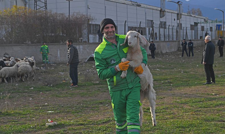 Zabıta ekiplerinin küçükbaş hayvanları yakalamaları esnasında sıcak görüntüler ortaya çıktı. Hayvanlara zarar vermemek adına oldukça dikkatli hareket eden ekipler, yakaladıkları keçi ve koyunları adeta bir çocukmuş gibi kucaklayarak taşıdı. Uzun bir uğraş sonunda yakalanan hayvanlar, kamyonlara yüklenerek Büyükşehir Belediyesi’ne teslim edildi.