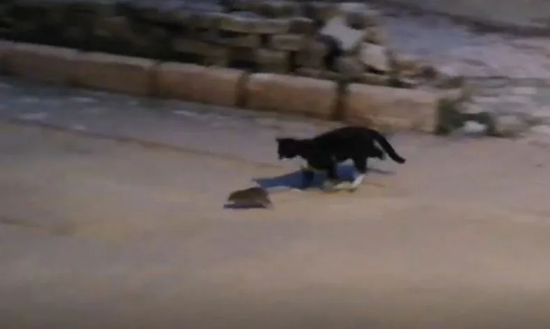 Elazığ merkezde bulunan Rızaiye Mahallesi’nde, kedinin farenin peşinden koştuğunu gören bir kişi, cep telefonu ile bu anları kaydetmeye başladı. Kedi, fareyi yakalamak için çaba sarf ederken, fare de her seferinde kedinin elinden kurtulmayı başardı. Çizgi film karakterleri Tom ve Jerry’i hatırlatan bu anları çevredeki vatandaşlar ilgiyle izledi.