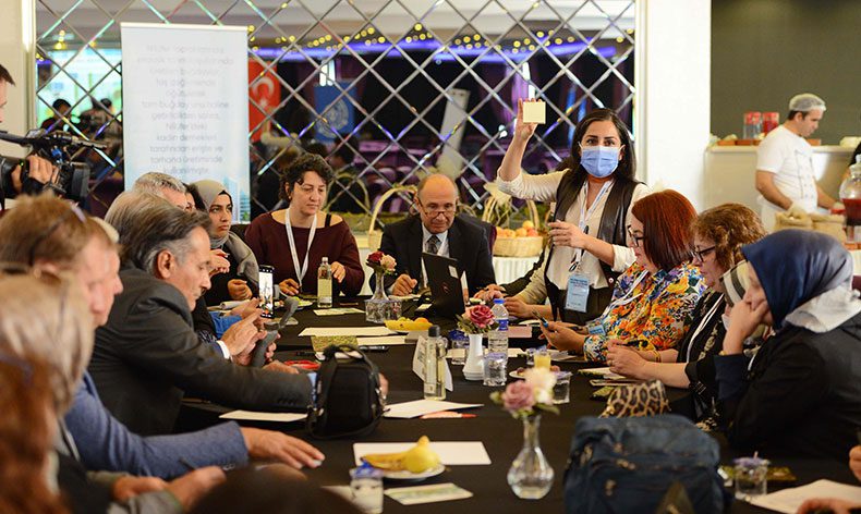 Konuşma ve sunumların ardından katılımcılar 4 ayrı çalışma grubuna ayrılarak, Yönetişim ve Atık, Üretim ve Atık, Tüketim ve Atık, Dağıtım ve Atık masalarında, Nilüfer’in gıda sisteminden beklentilerini ve Nilüfer’in kentsel gıda politikasının nasıl olması gerektiğini çok yönlü olarak tartıştılar.